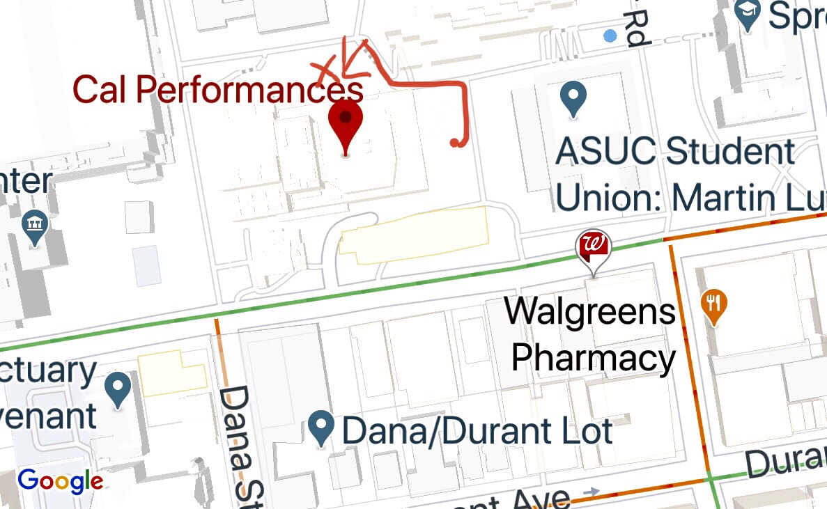 Subject: Re: FW: Chieftains- chorus requirements for Cal Perfs Berkeley Hi Jane, Please direct them to come in through the stage door which is located on the North/On-Campus side of Zellerbach Hall. If they are in front of the building (at the lobby) they will take the stairs to their right and follow the ramp to stagedoor. See attached map.Their rehearsal begins at 5pm, please ask them to arrive by 4:30pm so they have time to find their dressing room and orient themselves to the space.How many people total in the pipe band? I will be the point of contact from here forward and on the day of the show. If anyone has questions, or gets lost along the way, I am happy to help. My cell number is 510-610-4076Please let me know if you have any other questions.All the best,